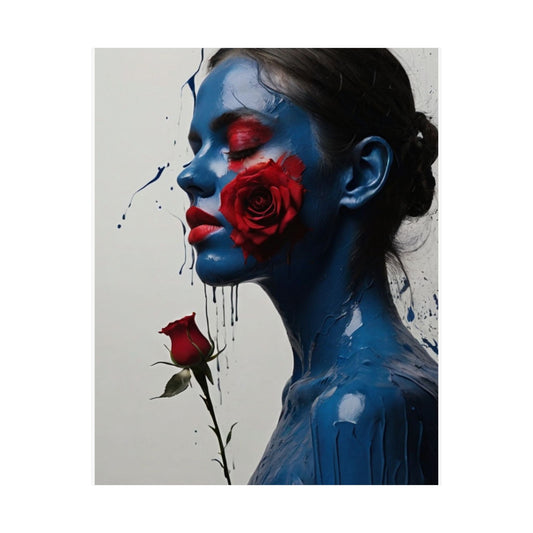 Sultry Blue Lady with Vivid Red Rose Wall Art (300gsm Satin Poster)