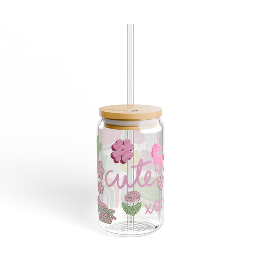 Cute Glass Sipper Cup 16oz (473ml) / Adorable Drinkware / Perfect Gift for Her
