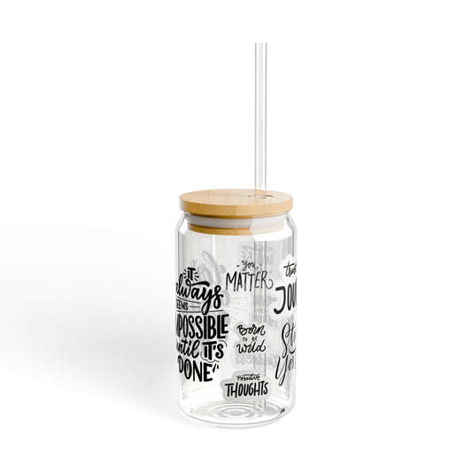 Daily Affirmations Glass Sipper Cup 16oz (473ml) / Empowerment Drinkware / Perfect Gift for Her
