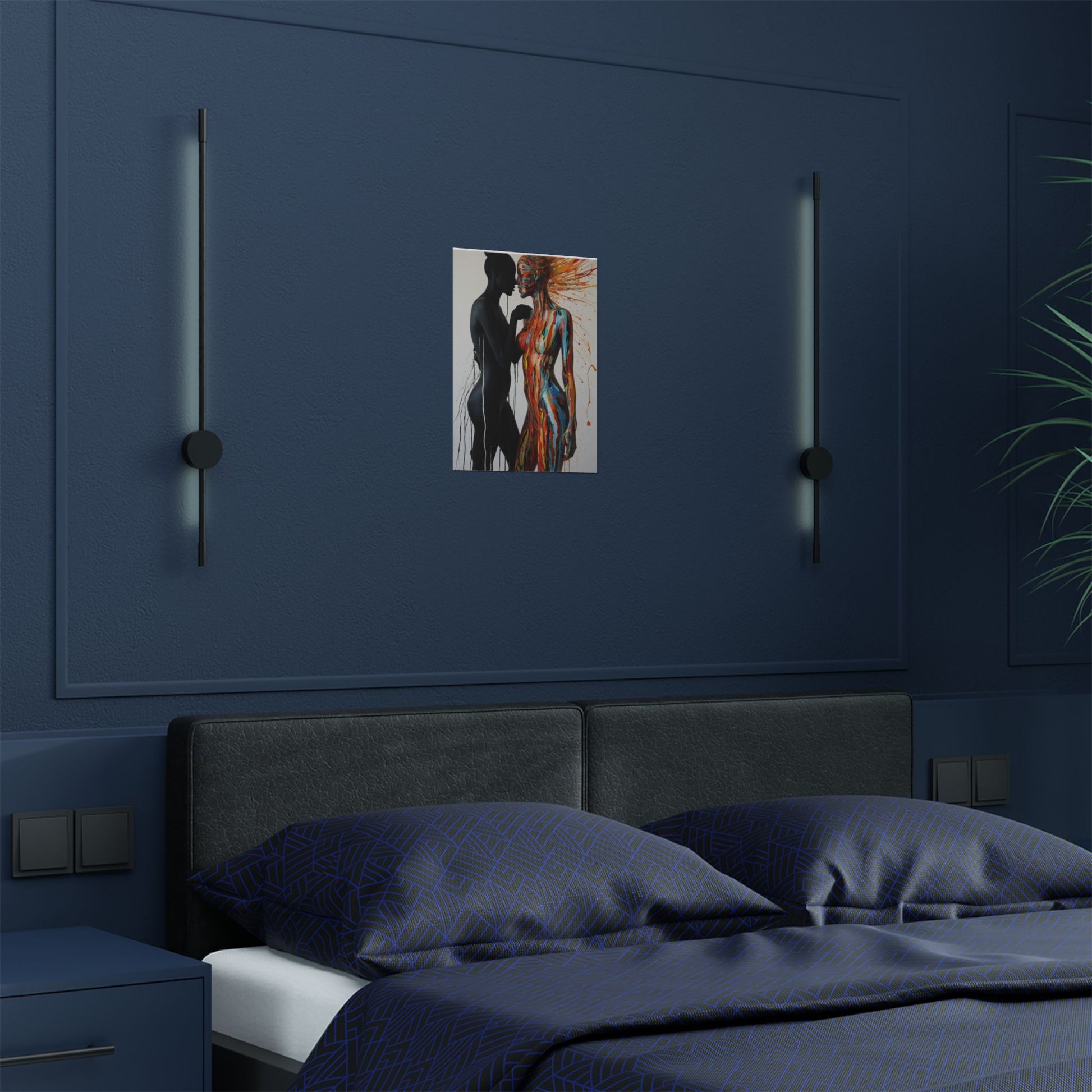 Abstract Silhouette Art of Two People in Close Embrace (300gsm Satin Poster)