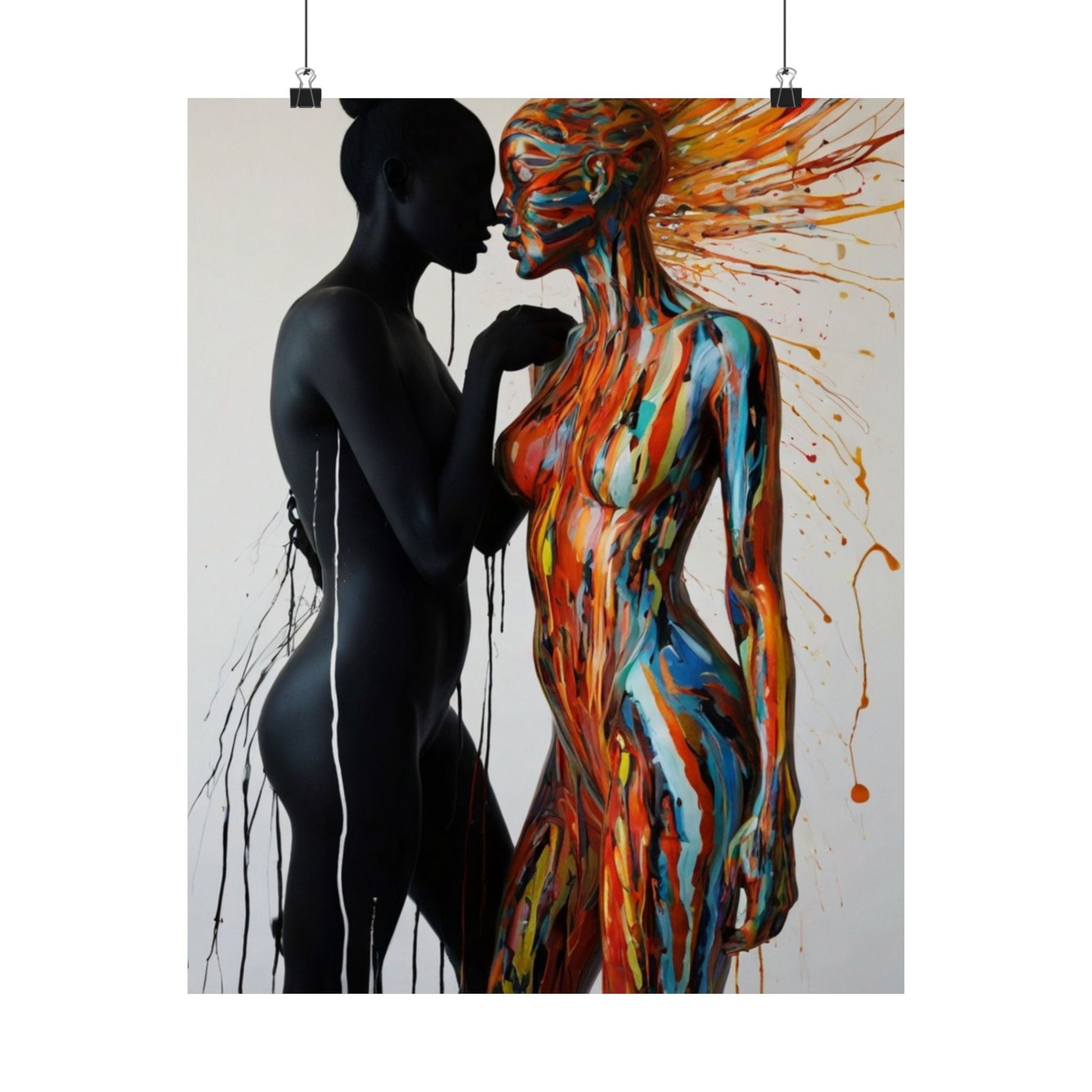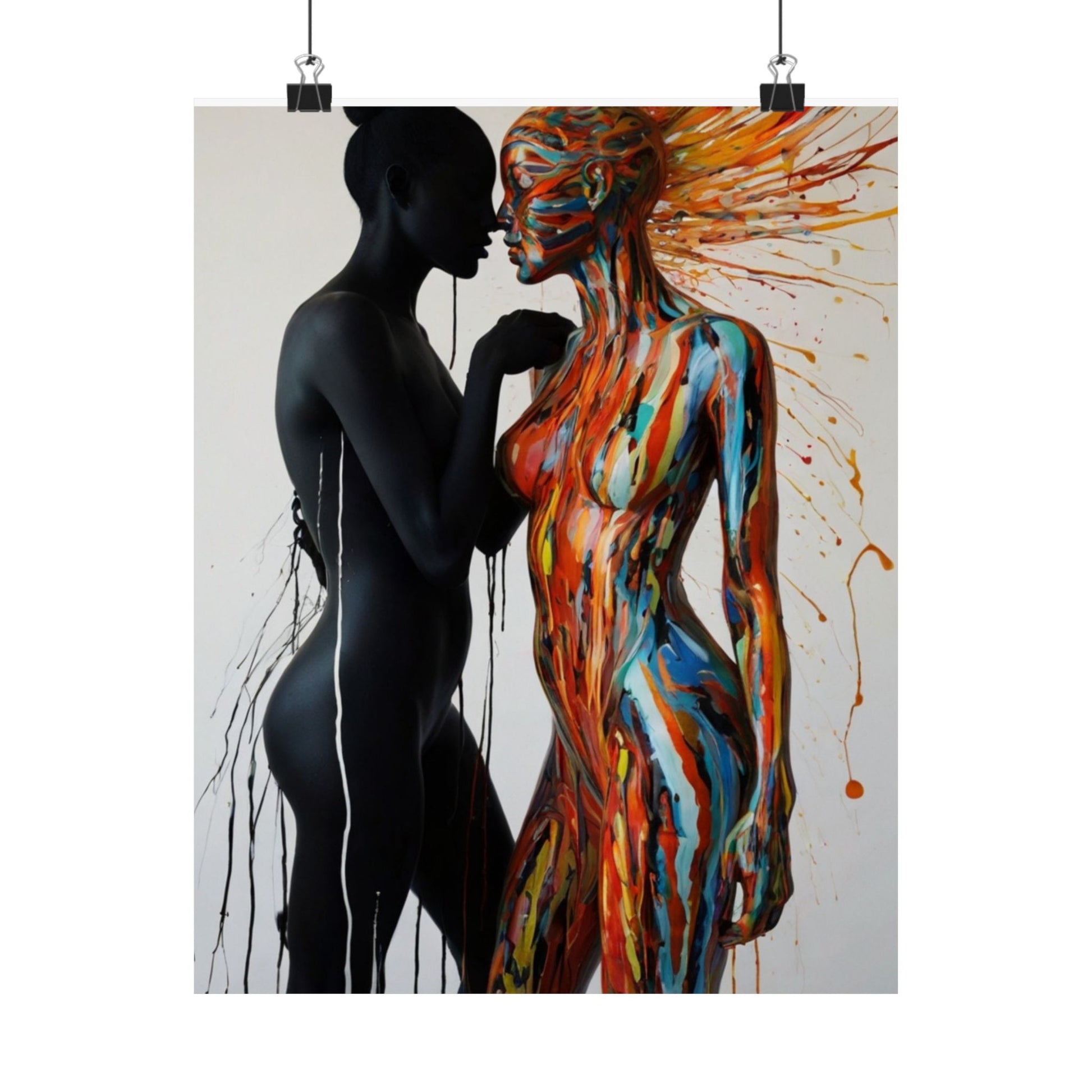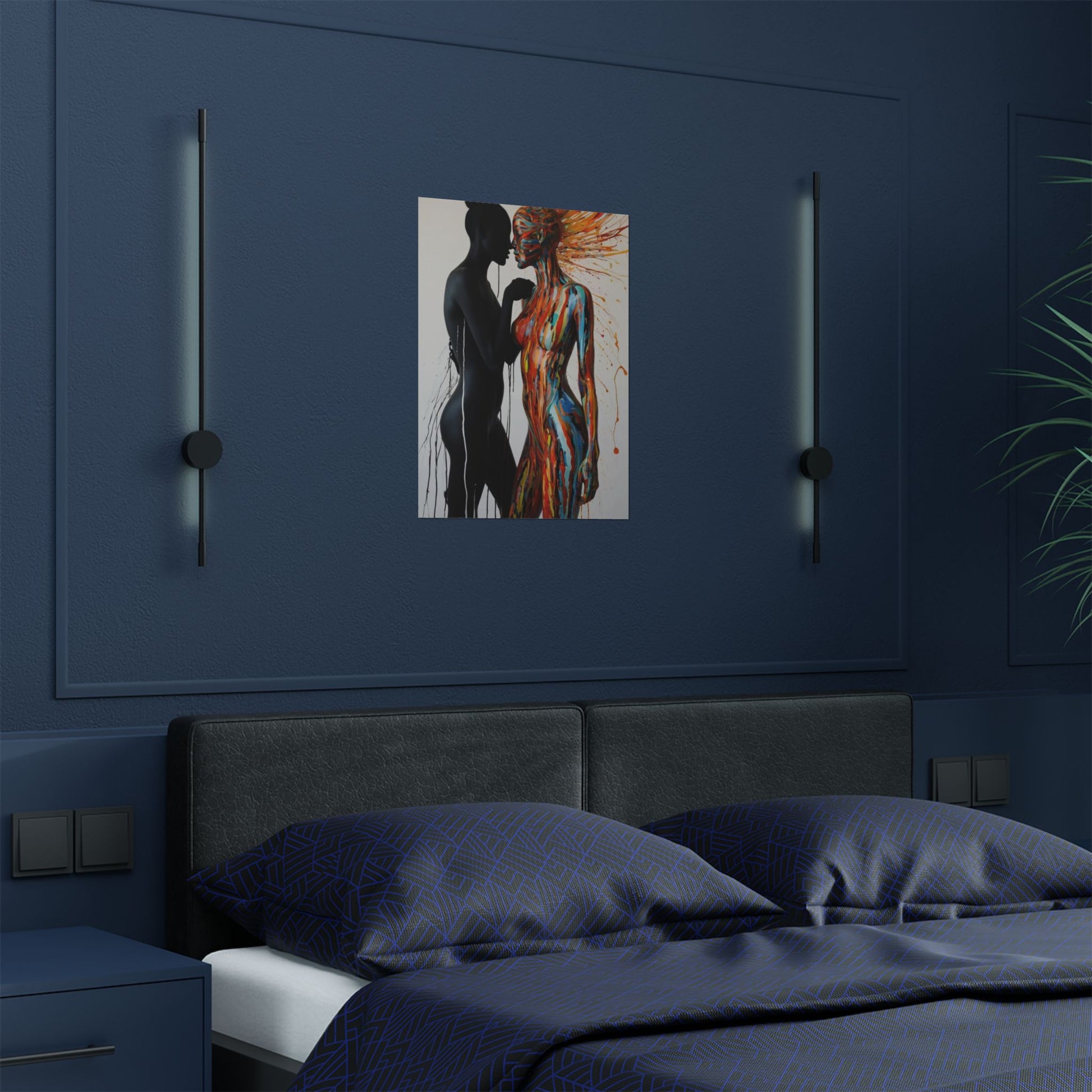 This abstract silhouette art captures the beauty of human connection, making it an ideal addition to bedrooms, living rooms, or creative spaces. Whether you're looking to elevate your home decor or gift someone a meaningful piece of art, this premium satin poster is a perfect choice.