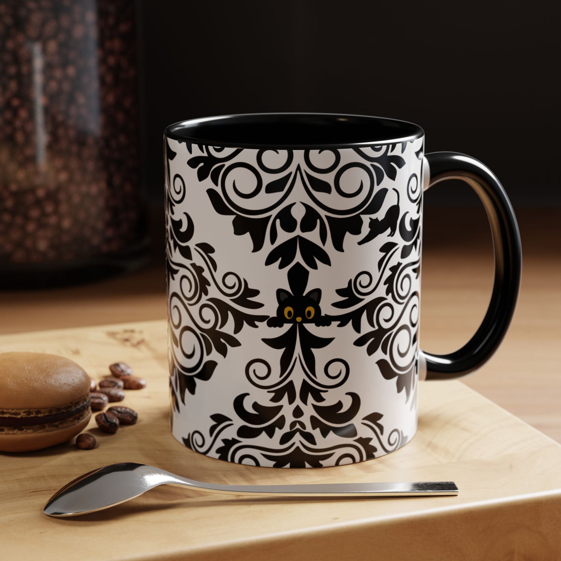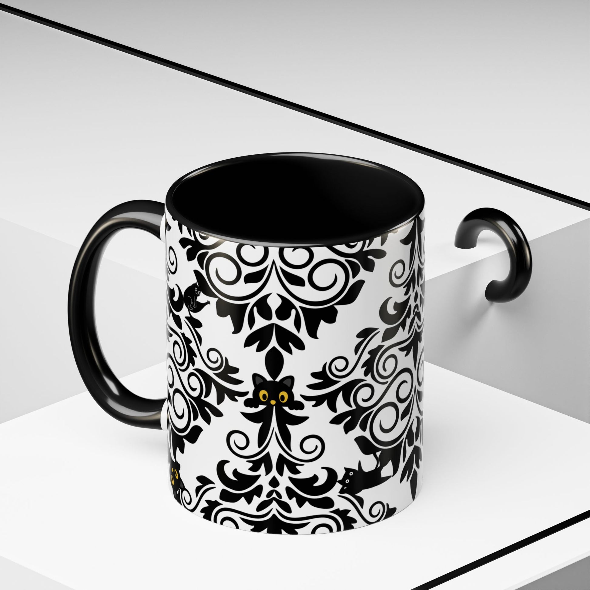 Add a dash of mystery to your morning brew with the "Hidden Black Cats" mug! This isn’t just a coffee cup—it’s a playful game of hide-and-seek featuring sneaky black cats cleverly tucked into an elegant damask-inspired design. Perfect for cat lovers, puzzle enthusiasts, or anyone who enjoys a little whimsy with their caffeine fix, this mug is sure to spark joy (and maybe a few giggles) with every sip.