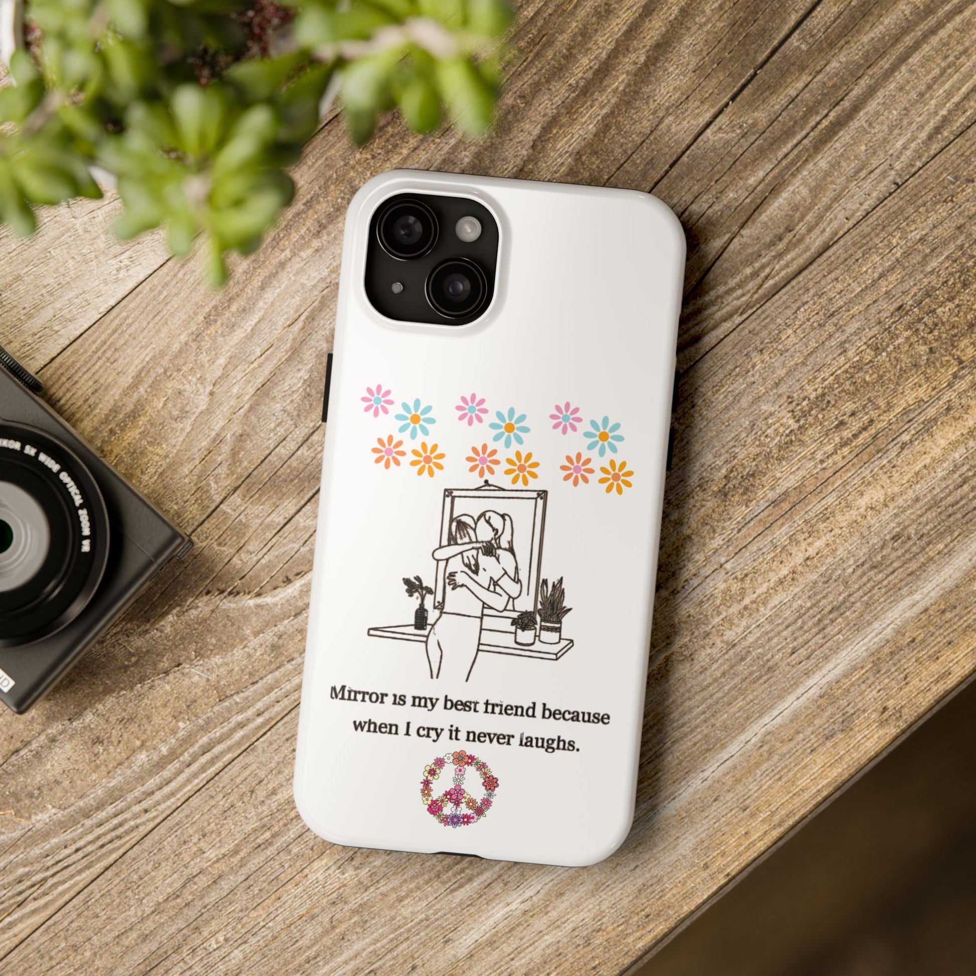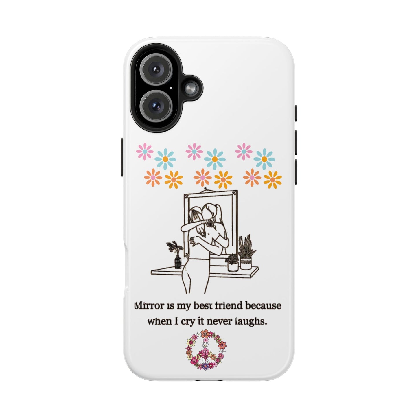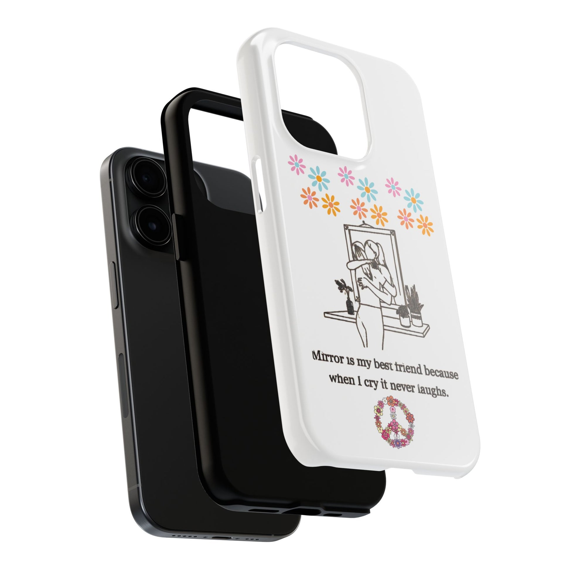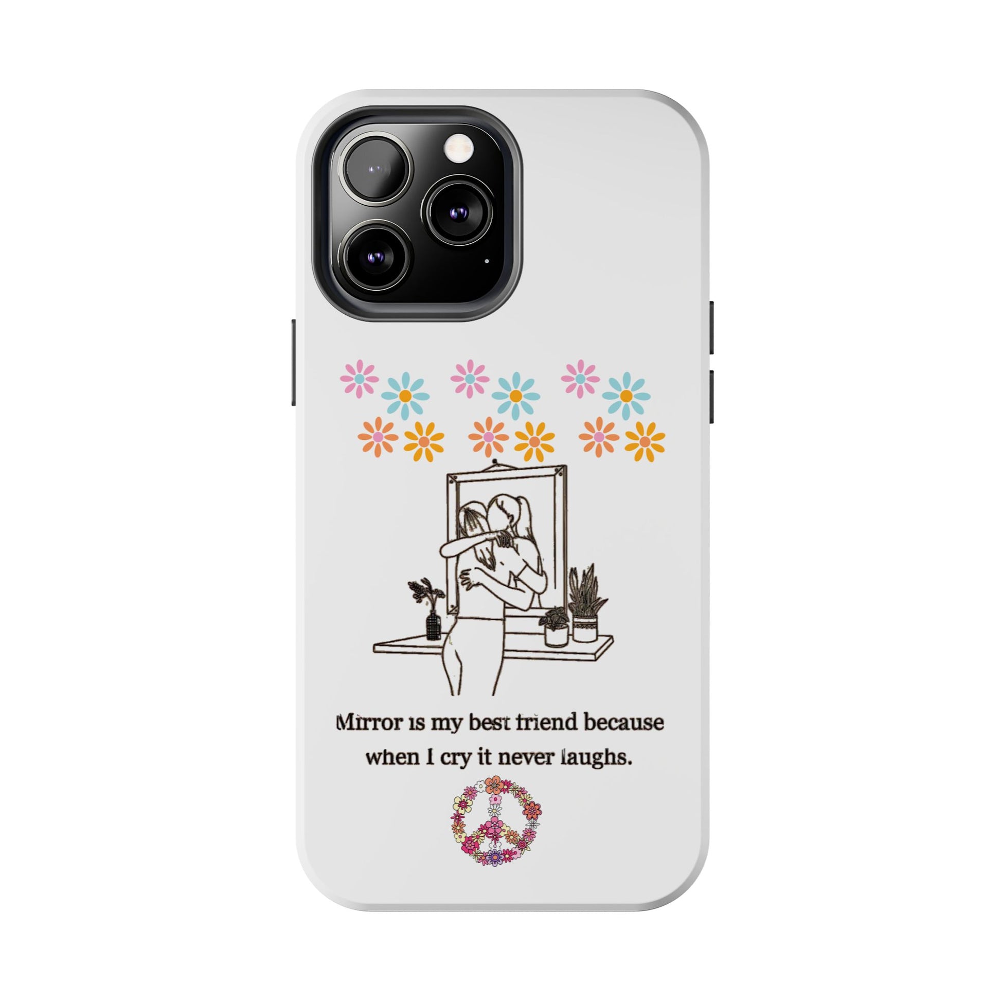 Carry your emotions with you with this “Mirror is My Best Friend” iPhone Case, featuring the touching quote: “When I cry, it never laughs.” This case offers both a meaningful message and sturdy protection, perfect for those who appreciate introspective designs. Ideal for personal use or as a thoughtful gift, this case provides a mix of style, emotion, and reliable defense for your phone.