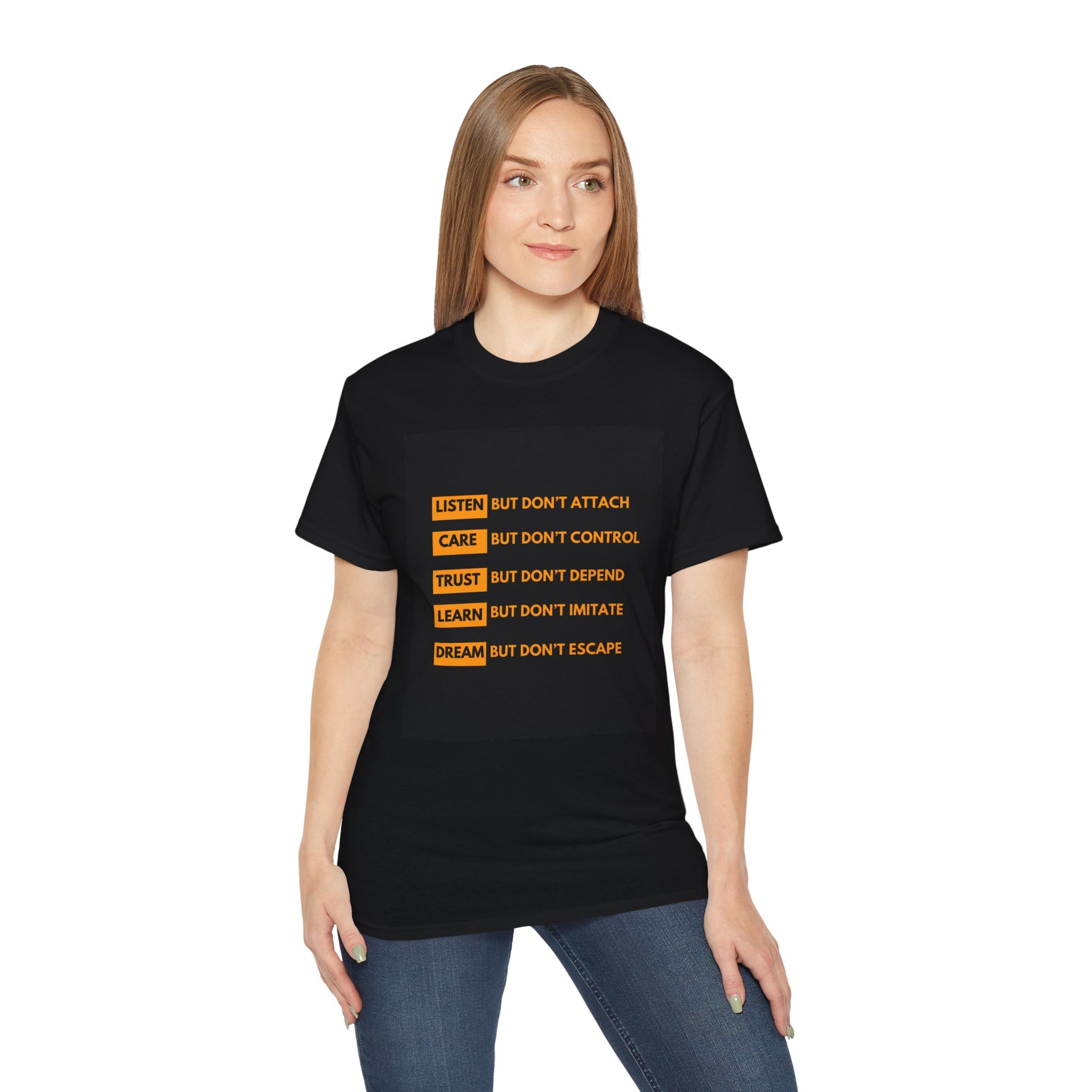 A thought-provoking statement piece that celebrates life's beautiful contradictions. This premium unisex tee features six carefully crafted paradoxical mantras split between front and back, designed for those who appreciate the complexity of balanced living.