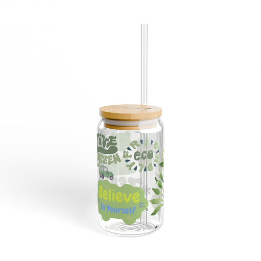 Believe in Yourself Eco-Friendly Glass Sipper Cup 16oz (473ml) / Inspirational Drinkware / Perfect Gift for Nature Lovers