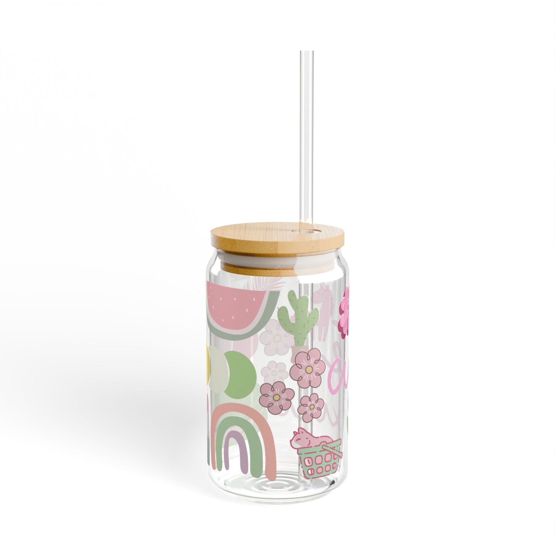 Cute Glass Sipper Cup 16oz (473ml) / Adorable Drinkware / Perfect Gift for Her